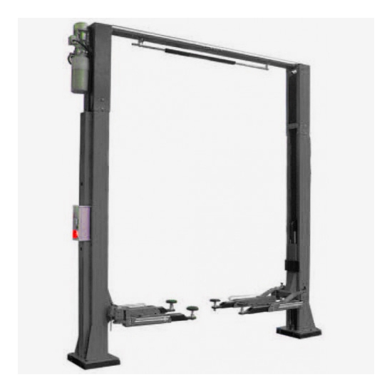 Подъемник двухстоечный электрогидравлический, асимметричный, двухцилиндровый, г/п 4000 кг., 2,2 кВт, высота подъема 1800 мм., расстояние между стойками 2760 мм., высота до верхней балки 3600 мм.